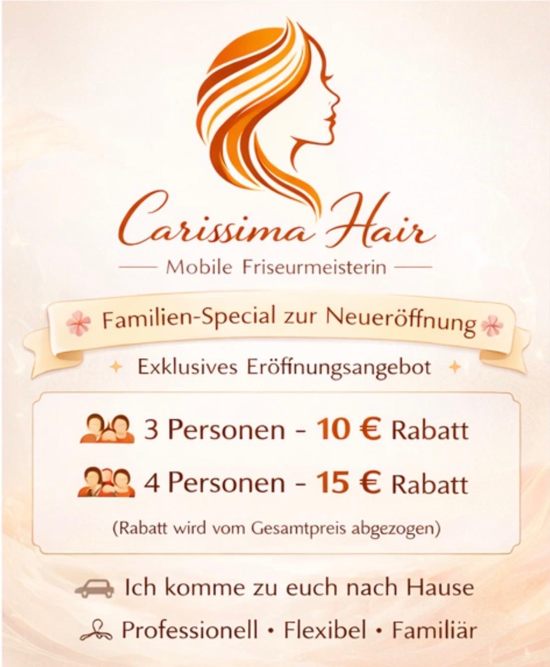 Mobiler Friseurservice * Termine nach Vereinbarung (Nebenerwerb) * Gemäß § 19 UStG wird keine Umsatzsteuer berechnet * Alle Preise in Euro * Preisänderungen vorbehalten * Stand Februar 2026